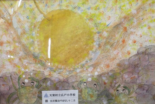 文化の森てんえいの図書室では、村内の幼稚園、各小中学校の子供たちが制作した絵画や工作品などの作品を月替わりに展示する「森の美術館」を開催しています。